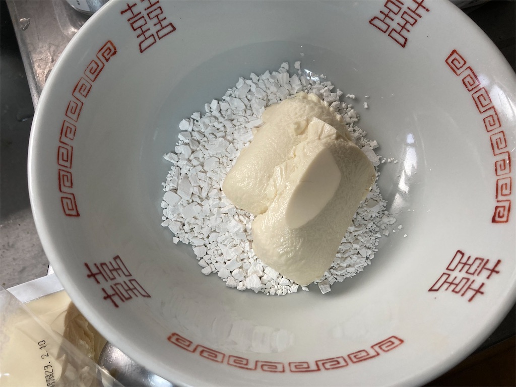 作成はラーメン鉢で。あるものを使うスタイルです。